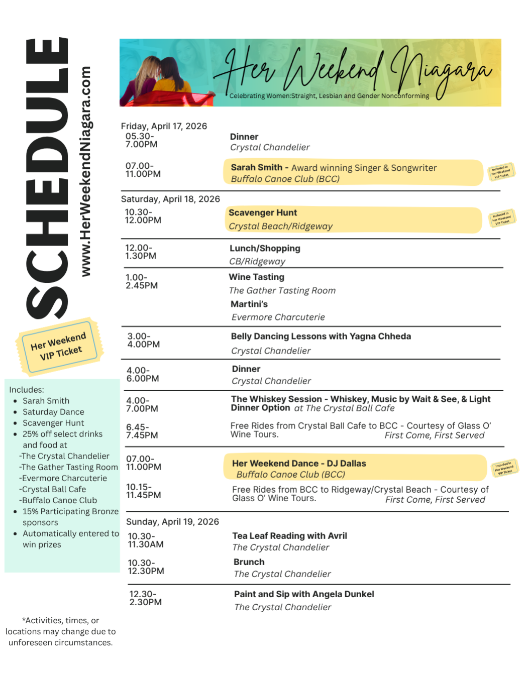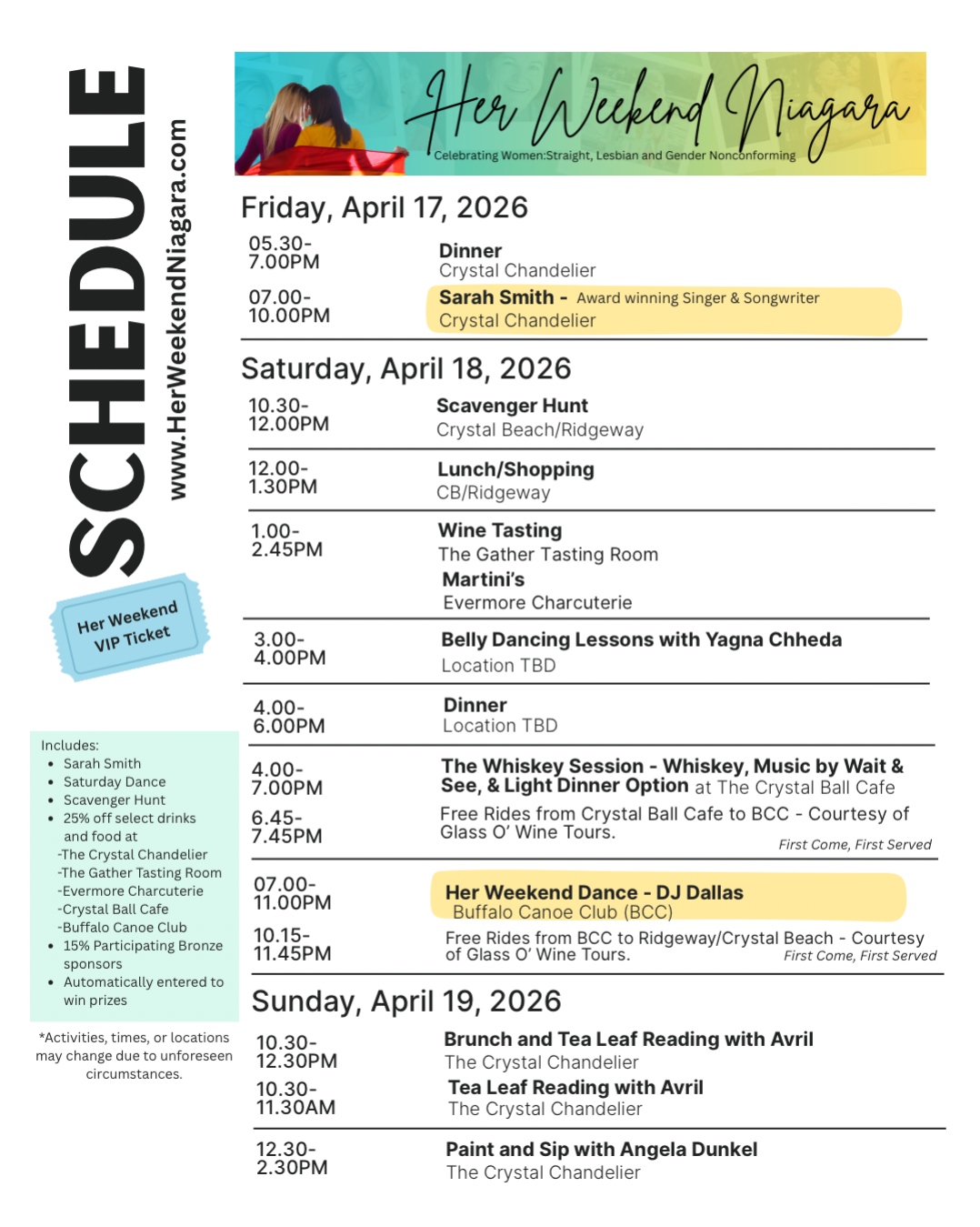 The weekend is organized into scheduled segments, where participants will gather to enjoy the best of what the local community has to offer.